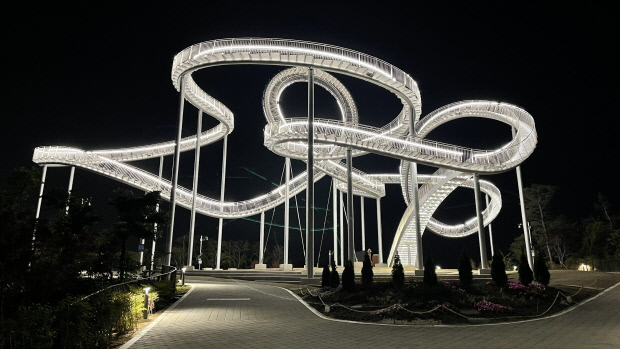 하지만 근래 ‘상생의 손’을 제치고 포항의 랜드마크로 새롭게 떠오르는 조형물이 있다. 지난해 11월 포항시 북구 환호공원에 등장한 ‘스페이스워크’(Space Walk)다. 국내 최초의 체험형 조형물이라는 타이틀을 지닌 ‘스페이스 워크’는 4095㎡ 부지에 가로 60m, 세로 57m, 높이 25m, 트랙 길이 333m의 압도적인 스케일을 자랑한다. 마치 롤러코스터를 연상케하는 333m 곡선형 철 구조물 트랙을 따라 걸으면 환호공원과 포항제철소, 영일대해수욕장 등 주변 풍광이 한눈에 들어온다. 단순히 감상하는 대상이 아닌, 조형물의 일부가 되어 공중에서 유영하는 듯한 짜릿한 경험을 누릴 수 있다.