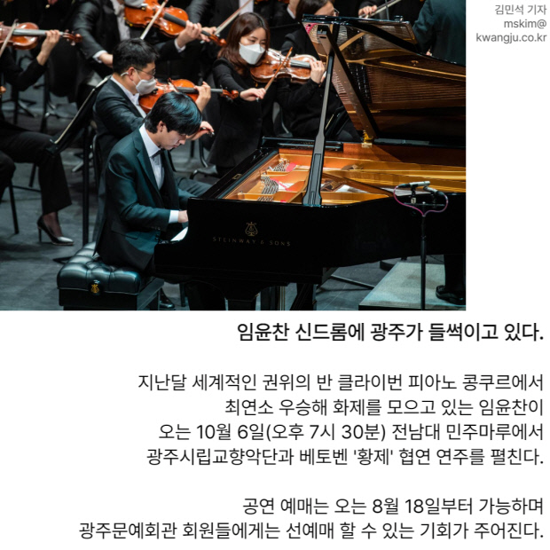 ✅ 세계 홀린 18세 피아니스트 임윤찬, 광주도 홀린다