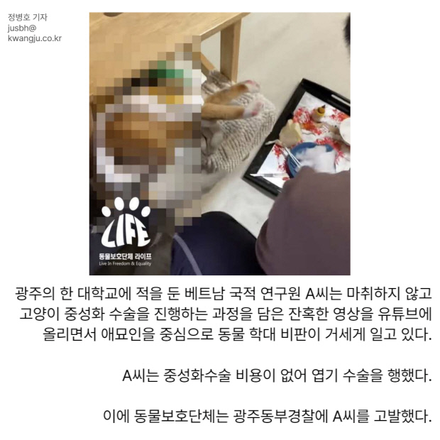 ✅ 마취도 없이 고양이 잔혹 수술 '충격'