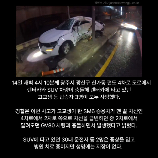 ✅ 렌터카-SUV 충돌, 고교생 등 3명 사망