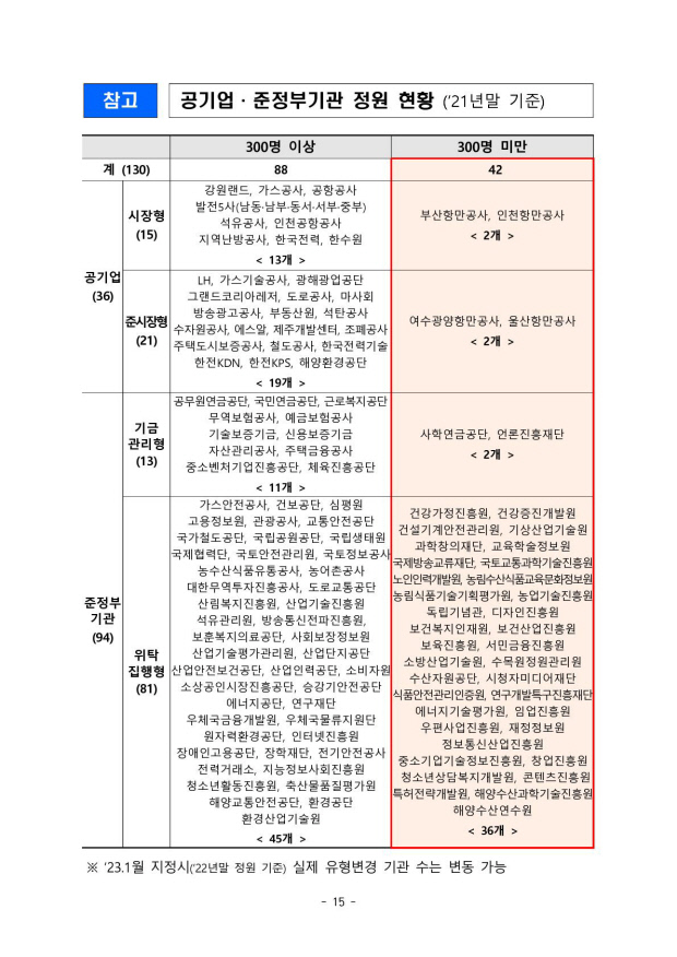정원 300명 미만 준정부기관→기타 공공기관 추진