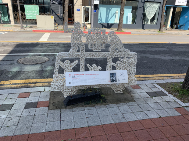 ![]() 광주 5·18 이야기를 따라가는 ‘오월길’ 안내 조형물. |