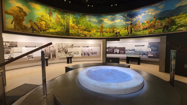 ![]() ‘제주 4·3평화 기념관’에 설치된 강요배 작가의 ‘제주도민의 5·10’. 기념관에는 역사적 자료 뿐 아니라 다양한 예술작품이 함께 전시돼 있어 또 다른 감흥을 전달한다. |