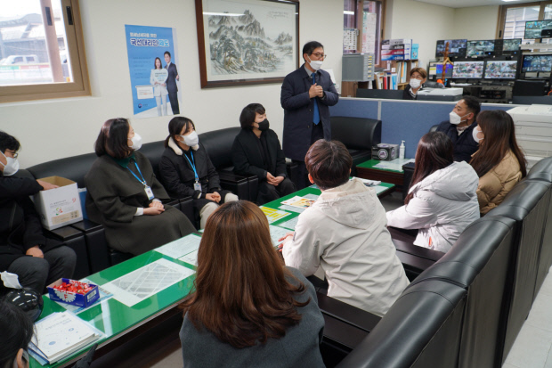 ![]() 최근 전남도내 사회서비스 관련 시설을 방문해 의견을 수렴하며 대회를 나누고 있는 강성휘 신임 원장과 사회서비스원 직원들. |