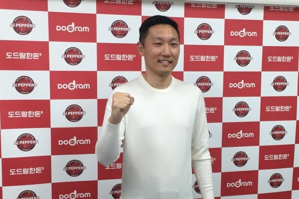 ![]() 아헨 킴 광주 AI페퍼스 감독이 14일 광주 서구 페퍼스타디움에서 공식 인터뷰를 마친 뒤 선전을 다짐하고 있다. |
