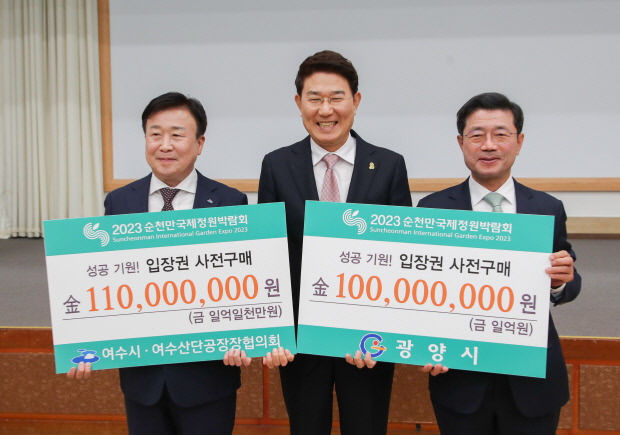 이번 회의에서는 여수시와 광양시가 각각 1억1000만원, 1억원 상당 ‘2023순천만국제정원박람회’ 입장권을 사전 구매하는 약정식이 열리기도 했다.