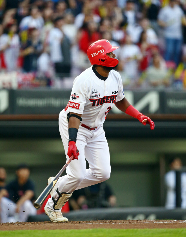 ![]() KIA 소크라테스가 7일 SSG와의 경기에서 타격을 한 뒤 공을 바라보고 있다. [KIA 타이거즈 제공] |