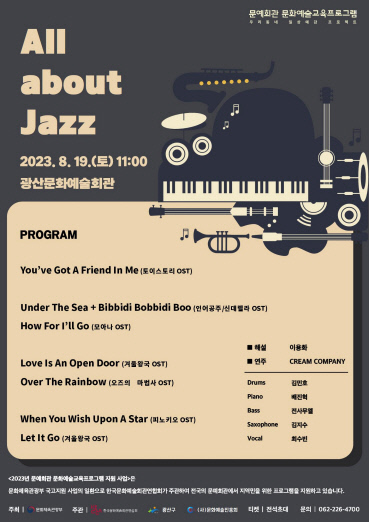 공연예술단체 ‘크림컴퍼니(대표 김민호)’가 재즈 감상 공연 ‘All about Jazz’를 오는 19일 오전 11시 광산문화예술회관에서 연다.