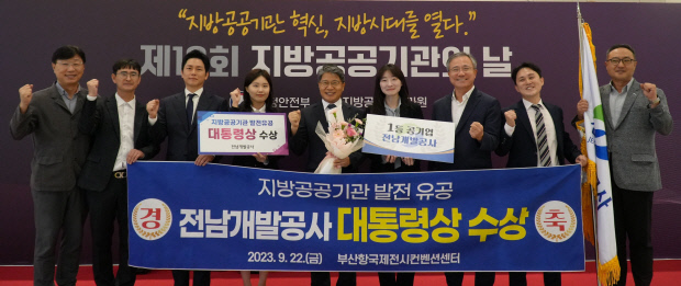 전남개발공사는 지난 22일 부산 부산항국제전시컨벤션센터(비펙스)에서 열린 ‘제 18회 지방공공기관의 날’ 행사에서 지방공공기관 중 최우수 기관에 선정돼 대통령상을 수상했다. 전남개발공사가 지난 2004년 전남도민의 복지향상과 지역사회 발전에 기여할 목적으로 설립된 이래 최초로 수상한 것으로, 도민이 행복한 가치 실현을 위해 직원 한 사람 한 사람이 변화와 혁신을 추구한 결과라는 평가가 나온다.