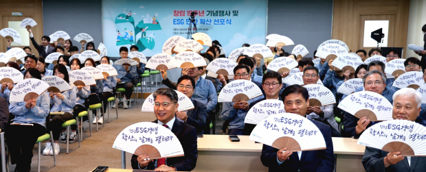 ![]() 전남개발공사는 지속가능한 발전을 위한 사회공헌활동과 사회적가치 계약제도, 친환경 에너지발전 등 다양한 ESG경영을 추진중이다. 개발공사가 올해 ESG 경영을 민간으로 확산하기 위해 개최한 선포식. 〈전남개발공사 제공> |