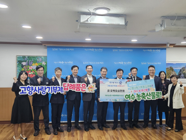 ![]() 박종탁 전남농협 본부장 등 여수지역 출신 농협 임직원들은 지난 3월 여수시청을 방문해 고향사랑 기부금을 기탁했다. <전남농협 제공> |