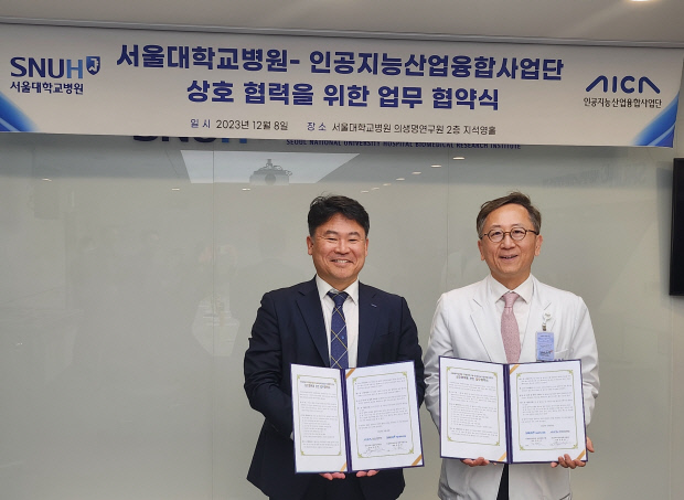 이날 협약식에는 김준하 인공지능산업융합사업단장과 김용진 서울대병원 의생명연구원장, 이형철 서울대병원 데이터사이언스연구부장 등이 참석했다.