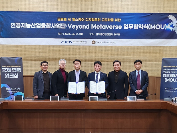 워크숍에 이어 AI사업단과 헬스케어 메타버스 플랫폼 제작 회사인 비욘드 메타버스는 글로벌 AI 헬스케어 디지털트윈 고도화 위한 업무협약(MOU)을 체결하고, AI 헬스케어 디지털트윈의 공동 연구, 실증, 고도화를 위한 협력 프로젝트를 추진하기로 협약했다.