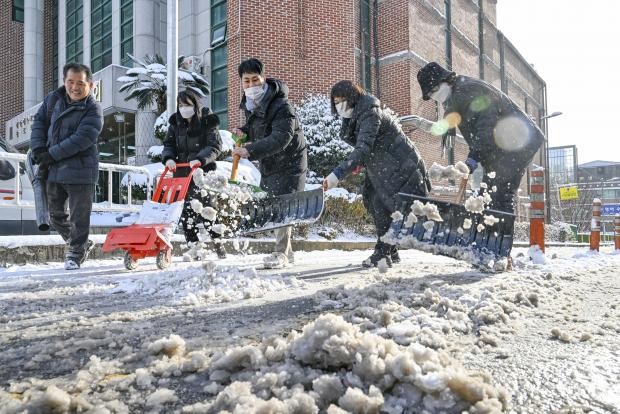![]() 광주전남지방에 많은 눈이 내린 21일 광주 북구 운암3동 주민들이 지난 밤 이변 도로에 쌓인 눈을 치우고 있다. /김진수 기자 jeans@kwangju.co.kr |