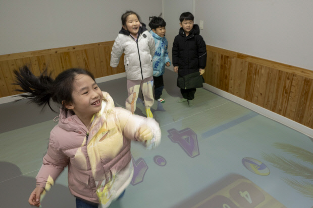 16일 오후 광주 동구 경양로 동구푸드마켓 2층에 개관한 스포츠가상현실체험관에서 어린이들이 가상현실로 구현된 게임을 체험하고 있다. 3D모션을 활용한 게임과 터치 테이블 등에 다양한 운동 프로그램이 마련되면서 겨울방학을 맞은 어린이들이 많이 찾을 것으로 기대를 모으고 있다. /김진수 기자 jeans@kwangju.co.kr