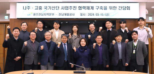 전남개발공사는 최근 간담회를 갖고 나주에너지국가산단, 고흥 우주발사체 국가산단 성공을 위한 협력 체계 구축에 공감대를 형성했다. <전남개발공사 제공>