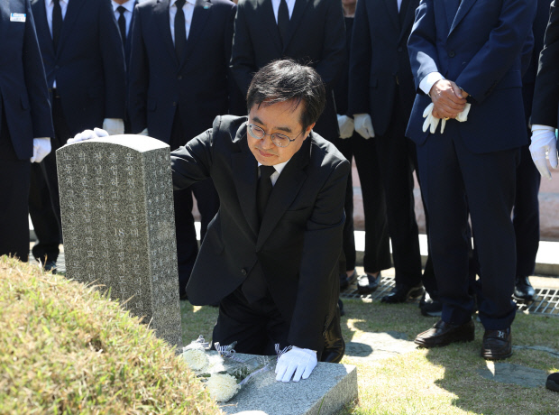 김 지사는 경기도 출신 열사 등을 추모하고 참배를 마친 뒤 방명록에 ‘역사의 물줄기를 바꾼 광주정신으로 대한민국 대전환을 이루겠다’고 썼다.