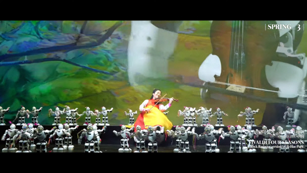 ![]() 바이올리니스트 박지혜가 AI 인공지능 로봇과 함께 ‘비발디 사계’ 전악장을 협연하고 있다. 당시 ‘세계 최장기간 인공지능 로봇과 인간의 콜라보 기록’를 목표로 공연을 펼쳤다. |