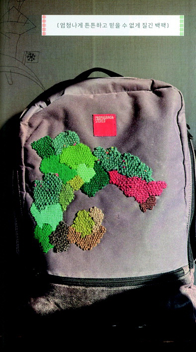 ![]() 직조 자수로 수선한 헤진 백팩. <마티 제공> |