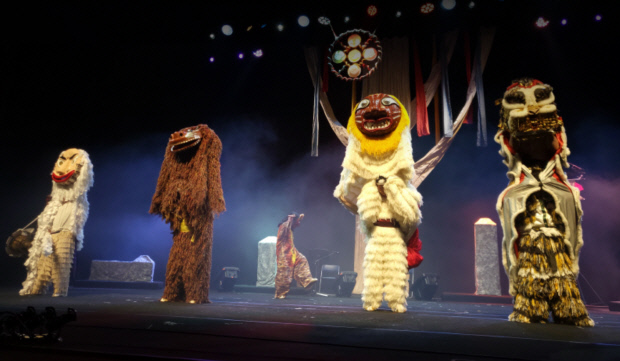 ![]() 연희점추리가 연희극 ‘백수지왕’을 선보이는 장면. <국립남도국악원 제공> |