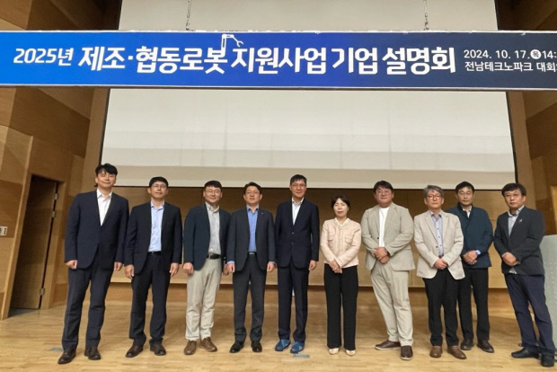 (재)전남테크노파크와 순천시는 지난 17일 전남 중소·중견기업 관계자 100여명 등을 대상으로 2025년 제조·협동로봇 지원사업 기업 설명회를 성공적으로 개최했다. <사진>