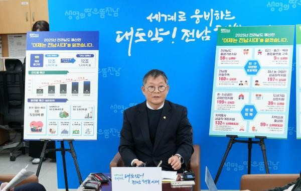 ![]() 장헌범 전남도 기획조정실장이 11일 오전 전남도청 기자실에서 2025년도 본예산안에 대해 설명하고 있다. <전남도 제공> |