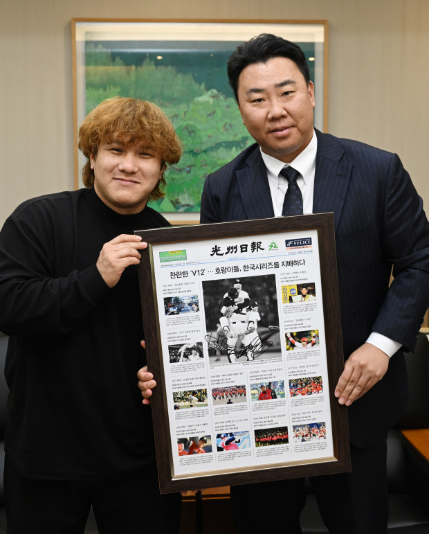 사령탑 첫해 ‘우승 사령탑’이 된 이범호 감독과 ‘한국시리즈 MVP’ 김선빈이 26일 광주 동구 금남로 광주일보 본사를 찾았다. 선수단이 하나로 뭉쳐 만든 우승이라고 입을 모은 두 사람은 ‘초심’으로 돌아가 2025시즌에도 정상에 도전하겠다는 각오를 밝혔다.