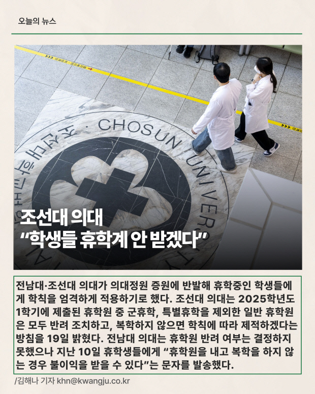 ✅조선대 의대 “학생 휴학원 안 받겠다”
