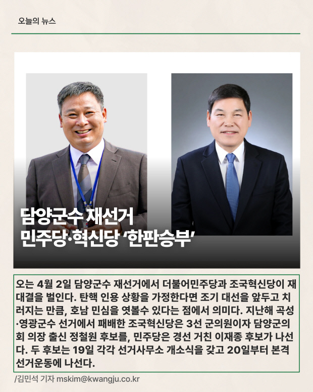 ✅담양군수 재선거 민주당·혁신당 ‘한판승부’