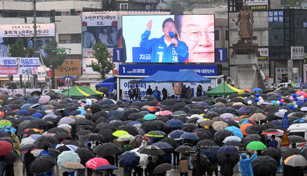 ![]() 더불어민주당 이재명 대선 후보가 15일 오후 여수시 이순신 광장에서 열린 집중 유세에서 연설하고 있다. /특별취재단=나명주기자mjna@kwangju.co.kr |
