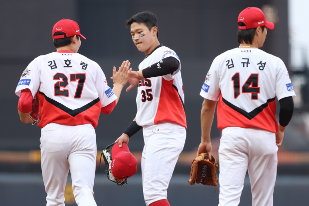 오선진을 중견수 플라이로 잡은 윤중현은 박주홍에게 좌측 2루타를 맞으면서 1사 2루에 몰렸다. 송지후를 유격수 플라이로 처리한 뒤 송성문을 고의 사구로 내보내면서 1사 1·2루. 윤중현이 임지열에게 볼넷은 허용했지만 카디네스를 초구 2루수 플라이로 잡고 KIA의 모든 수비 이닝을 완료했다.
