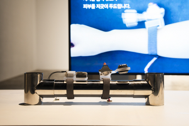 ![]() ‘피부로 듣는 공포 공포영화 속 긴장-해소 흐름 전달을 위한 청각 장애인 대상 햅틱촉각 프로젝트’(ASC Lab). <광주디자인비엔날레 제공> |