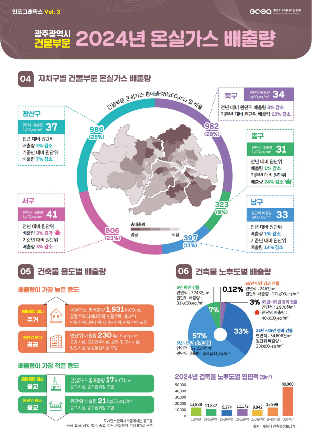 광주기후에너지진흥원은 6일 이같은 내용이 담긴 ‘광주 건물 온실가스 2024’을 공개했다.