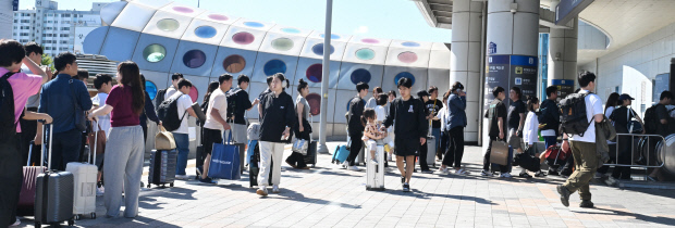 ![]() 추석 연휴 마지막 날이자 한글날인 9일 고향 방문을 마친 귀경객들이 광주송정역 입구에서 서울행 열차를 타기위해 에스컬레이터 앞에 길게 대기하고 있다. /나명주기자mjna@kwangju.co.kr |