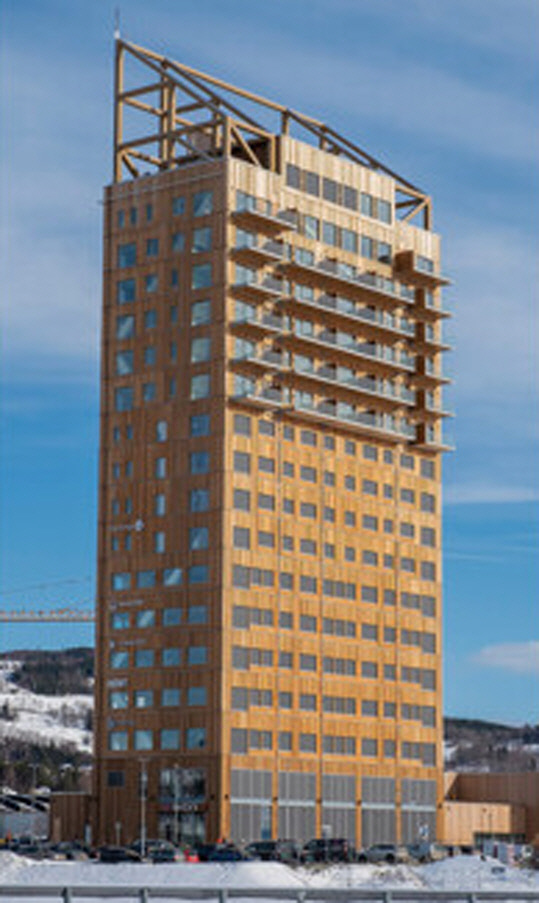 ![]() 세계에서 가장 높은 목조건축물인 노르웨이 주상복합건물 미에스토르네. |