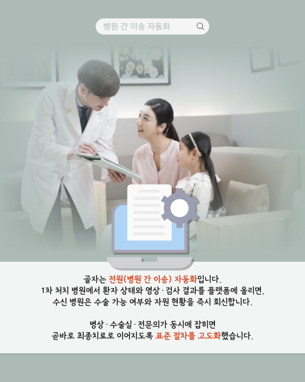 광주시는 ‘광주형 원스톱 응급의료플랫폼’을 가동합니다. 이 플랫폼은 광주지역 21개 응급의료기관을 하나의 병원처럼 가동하는 것이 핵심입니다. 기존에 응급 환자를 타병원으로 보낼 때 전화·팩스 중심 전달 방식을 실시간·디지털 방식으로 전환해 환자 안전을 강화하고 병원간 협력을 지원합니다.