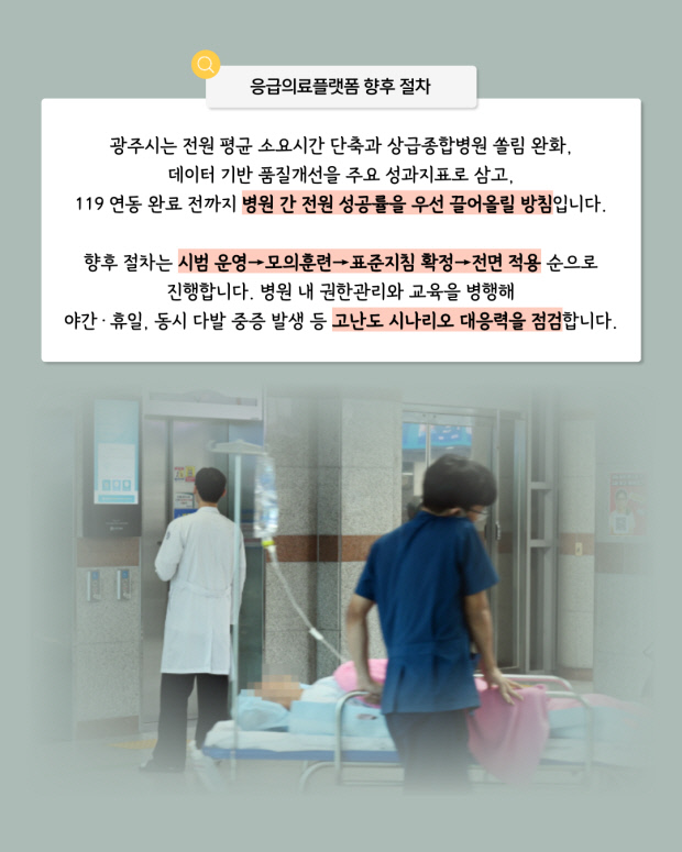 광주시는 전원 평균 소요시간 단축과 상급종합병원 쏠림 완화, 데이터 기반 품질개선을 주요 성과지표로 삼고, 119 연동 완료 전까지 병원 간 전원 성공률을 우선 끌어올릴 방침입니다.