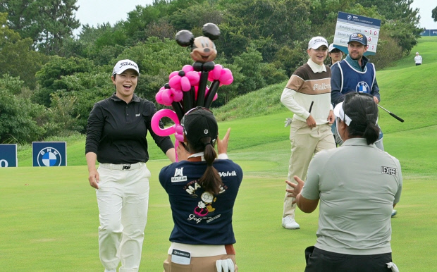 19일 해남 파인비치 골프링크스에서 열린 LPGA 투어 BMW 레이디스 챔피언십에서 특별한 장면이 연출됐다. 4라운드 최종전이 진행된 이날 지은희가 마지막 홀에 등장하자, 앞 조에서 먼저 경기를 끝내고 퇴장했던 유해란과 이미향이 필드로 돌아왔다.