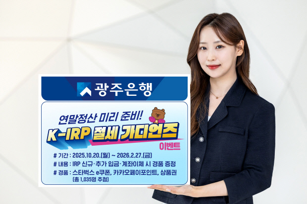 광주은행은 20일 “개인형 퇴직연금(IRP) 고객을 대상으로 ‘K-IRP 절세 가디언즈’ 이벤트를 실시한다”고 밝혔다.