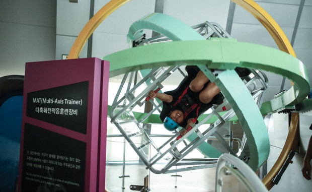 우주비행사가 겪을 수 있는 우주멀미 등 평형감각 이상현상을 체험하는 다축회전적응훈련장비. /최현배 기자