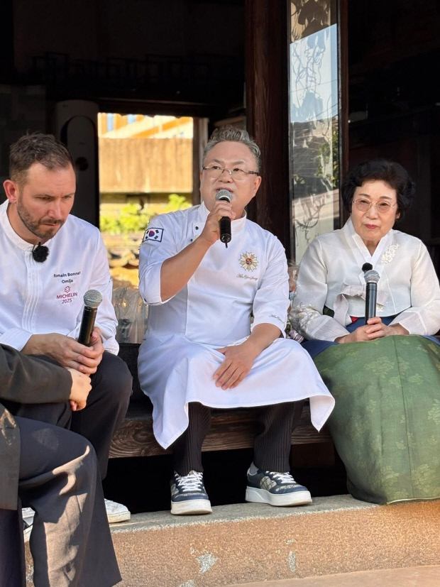 미식 콜라보 행사에 참여한 로망 보네 셰프(미슐랭 원스타), ‘흑백요리사’로 유명한 안유성 음식명장, 남파 고택 강종숙 종부.