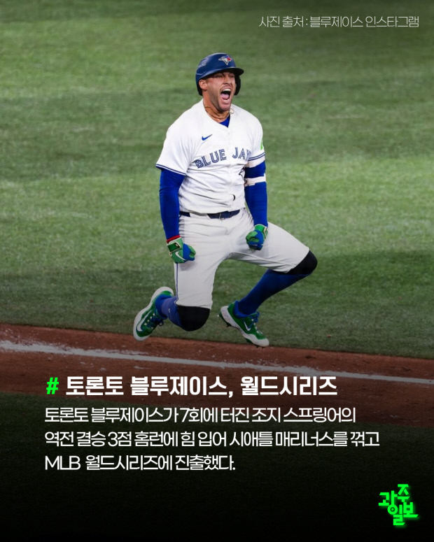 토론토 블루제이스가 7회에 터진 조지 스프링어의 역전 결승 3점 홈런에 힘 입어 시애틀 매리너스를 꺾고MLB 월드시리즈에 진출했다.