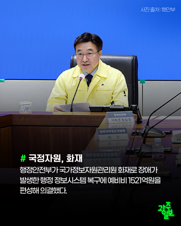 행정안전부가 국가정보자원관리원 화재로 장애가 발생한 행정 정보시스템 복구에 예비비 1521억원을 편성해 의결했다.