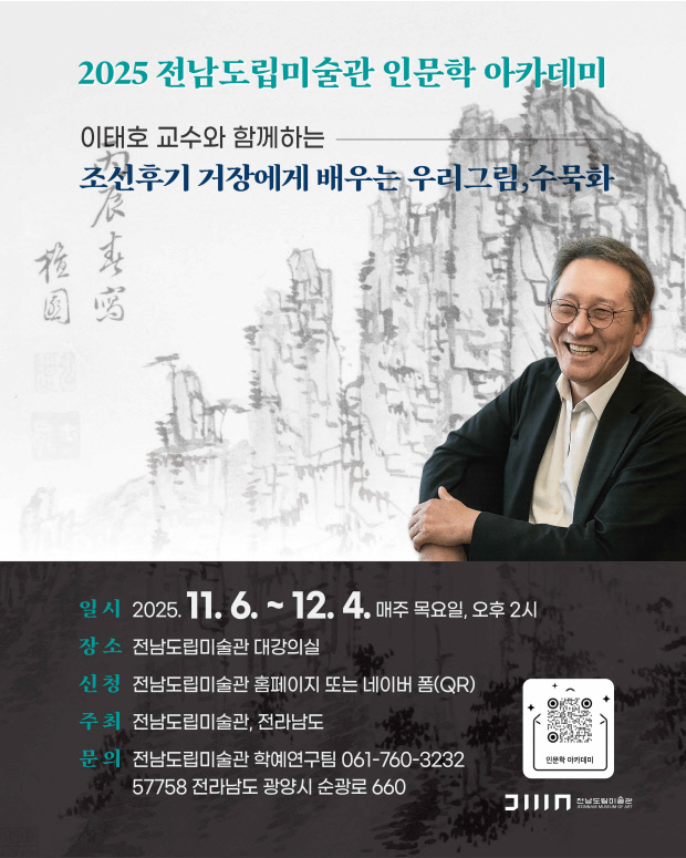 전남도립미술관(관장 이지호)이 수묵화를 주제로 한 특별강좌를 마련했다. 특히 이번 강좌는 전남국제수묵비엔날레를 기념해 기획됐으며 전통 수묵화를 현대적 시각으로 재조명하는 데 초점을 두고 있다.