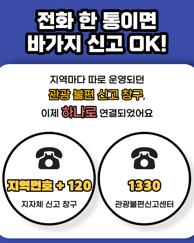 기존에 지역별로 나뉘어 혼선을 주던 신고 창구를 ‘지역번호 + 120’과 ‘1330 관광불편신고센터’로 통합 연계해 어디서나 손쉽게 신고할 수 있도록 했다.