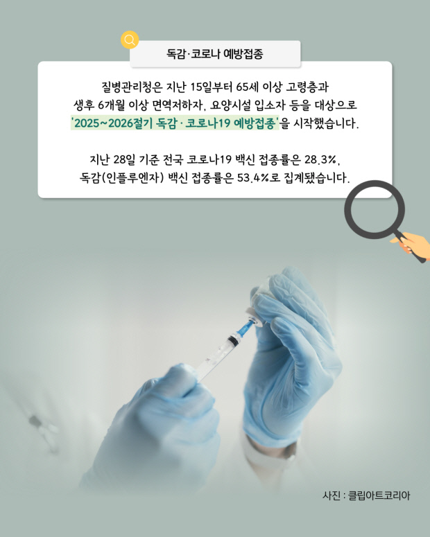 28일 기준 전국 코로나19 백신 접종률은 28.3%, 독감(인플루엔자) 백신 접종률은 53.4%로 집계됐습니다.