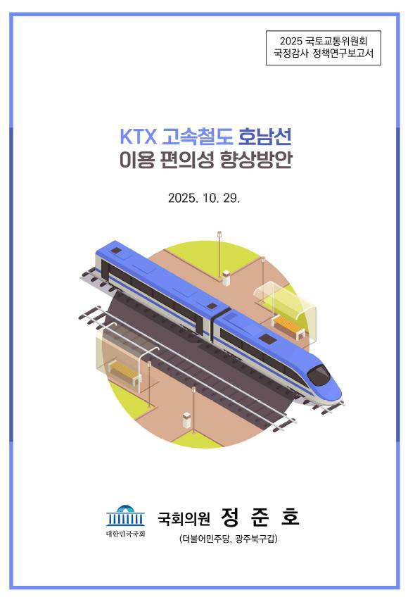 이 내용은 30일 더불어민주당 정준호(광주 북구갑) 의원이 발간한 정책자료집 ‘KTX 호남선 이용 편의성 향상방안’에 담겼다.