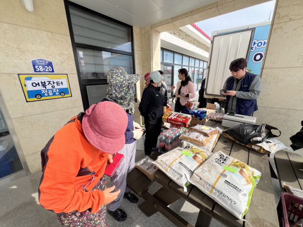 이날로 5회차를 맞은 어복장터 사업은 총 10회 운영으로 기획됐다. 주민들이 마을 이장을 통해 필요한 물건을 주문해두면, 매주 목요일 트럭을 보내 상품들을 전달하는 식이다. 결제는 카드·현금은 물론 민생회복소비쿠폰도 가능하다.