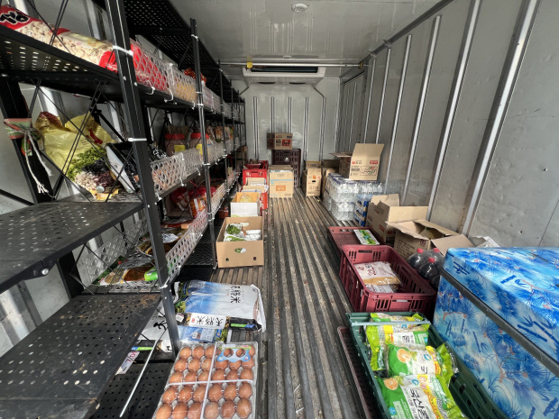 ![]() 어복장터 트럭(위)과 트럭 안에 실린 생필품. |