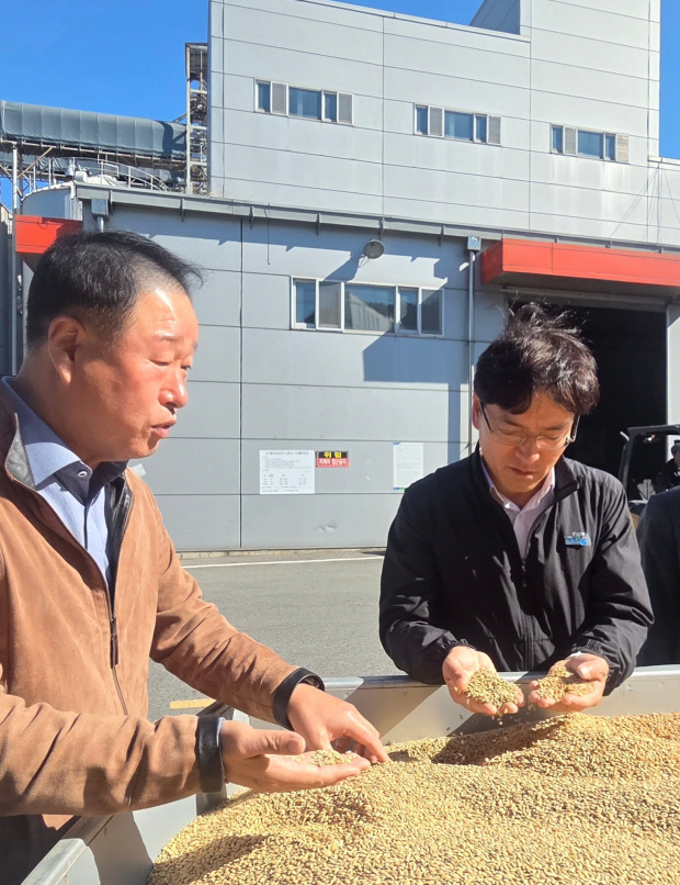 ![]() 이광일 농협전남본부 본부장(오른쪽)이 최근 해남 옥천농협 RPC를 찾아 올해 수매한 산물벼를 확인하고 있다. 〈농협전남본부 제공〉 |
